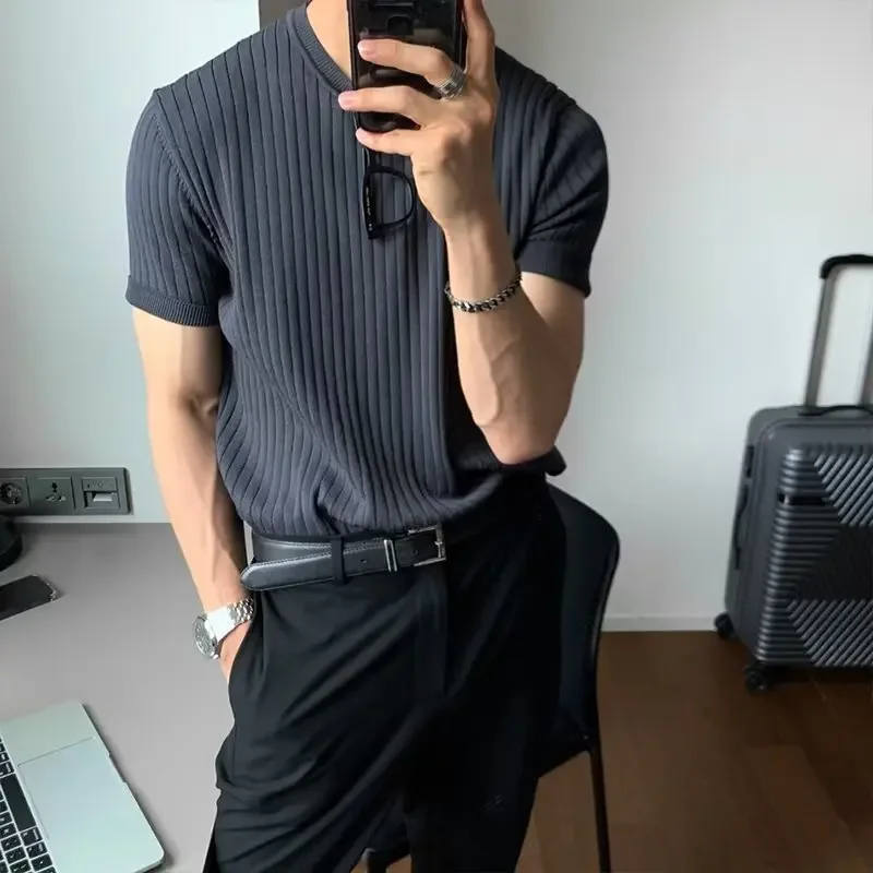 • Design Slim Fit:O design justo desta camiseta estilo coreano acentua o formato do seu corpo, proporcionando um visual elegante e moderno.