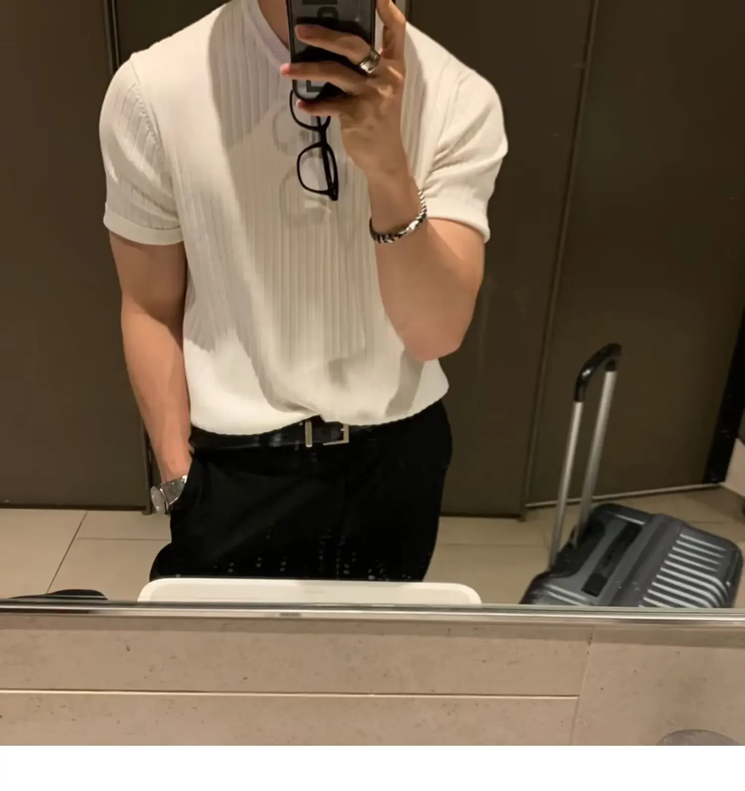 • Material de seda gelada fina de verão:Confeccionada com material Summer Thin Ice Silk premium, esta camiseta masculina oferece um ajuste macio e confortável, perfeito para o verão.